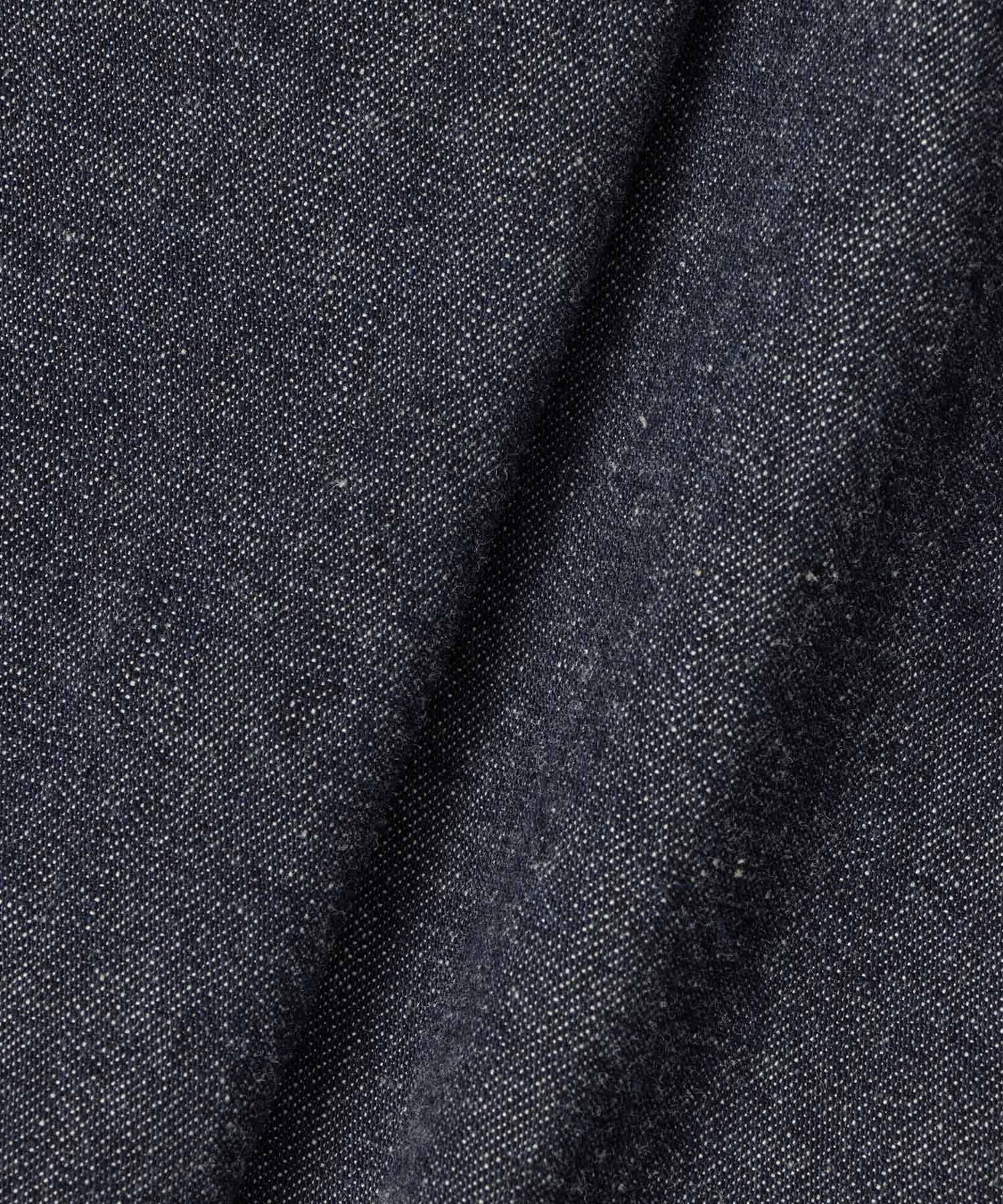 縦糸にムラ糸を使用した日本製のデニム素材。インディゴは少しグリーン味がかかった特徴的なカラーリングです。モカは、経年変化を楽しめる硫化染料を使用しています。