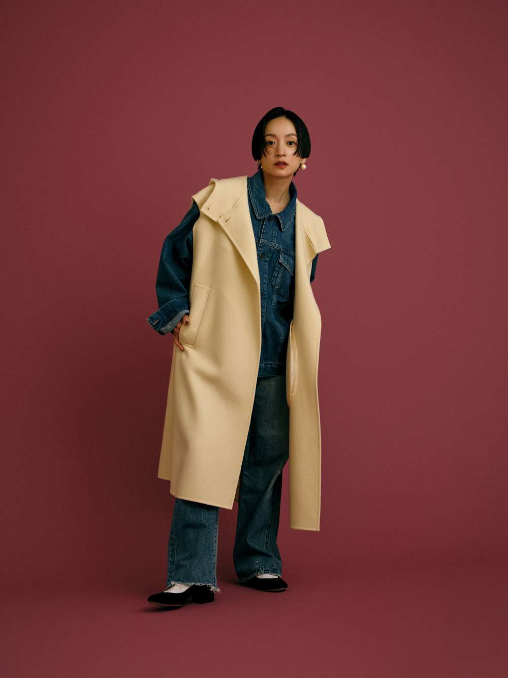 今回は私が普段から着ているデニムやコーデュロイパンツも合わせてスタイリングしてみました。「HOUSE OF LOTUS」の服って、着心地がよく上質で美しいから、これまで私が大切にしてきた愛着のある “ マイフェイバリット ” を合わせて、自分らしく長く付き合っていきたい…そんな想いが、私なりの「Au Bon Viex Temps」スタイルです。